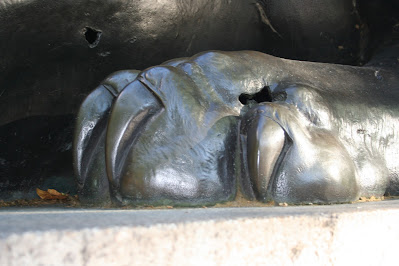 | Shrapnel wound to Sphinx of London obelisk - 1917 |
